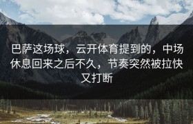 巴萨这场球,云开体育提到的,中场休息回来之后不久,节奏突然被拉快又打断 在最近一场引发热议的比赛里,...