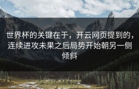 世界杯的关键在于,开云网页提到的,连续进攻未果之后局势开始朝另一侧倾斜 世界杯作为全球最盛大的体育赛...