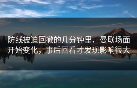 防线被迫回撤的几分钟里,曼联场面开始变化,事后回看才发现影响很大 引子 在一场激烈的对抗中,...